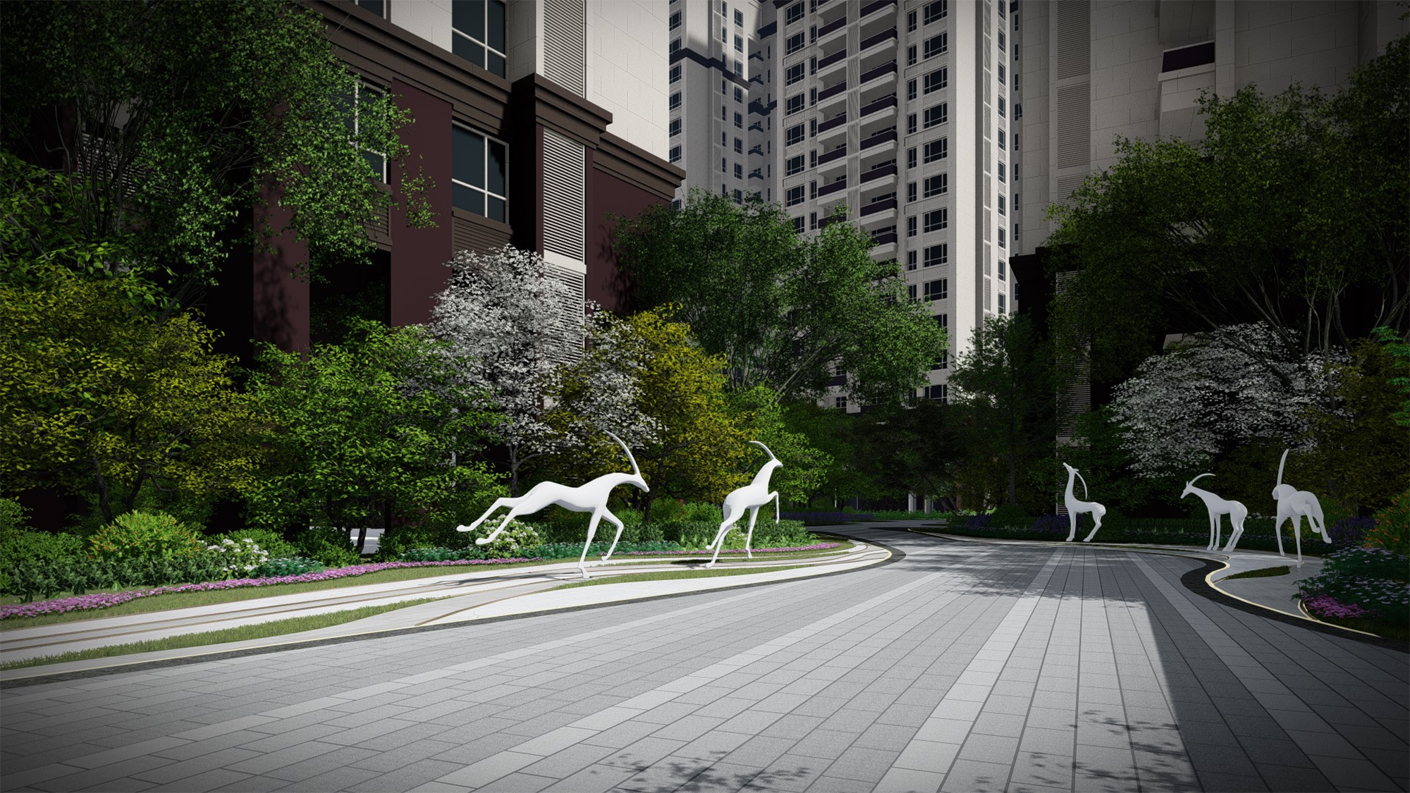 “翡翠和悦”为国际艺术之悦,全龄生活之悦。设计力图采用简洁、有韵律的线型空间构成方式,营造轻松、自由、艺术、奢享的景观体验,打造50亩城市TOP级轻奢文化圈层。