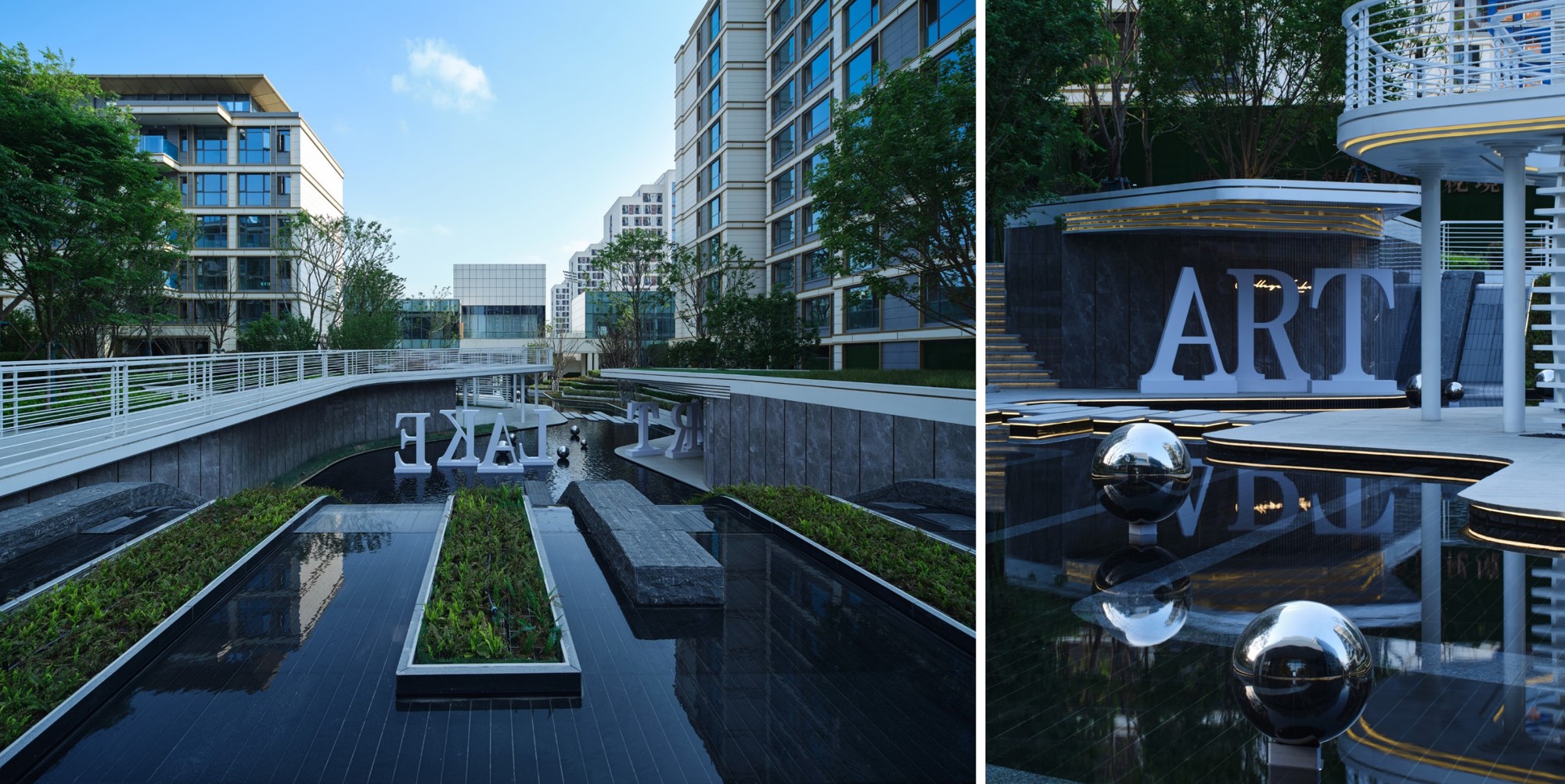 水系景观与台地式峡谷花园的融合是艺墅语湖项目的艺术特色,极大丰富了景观的立体层次,带来步移景异的视野及感官享受。